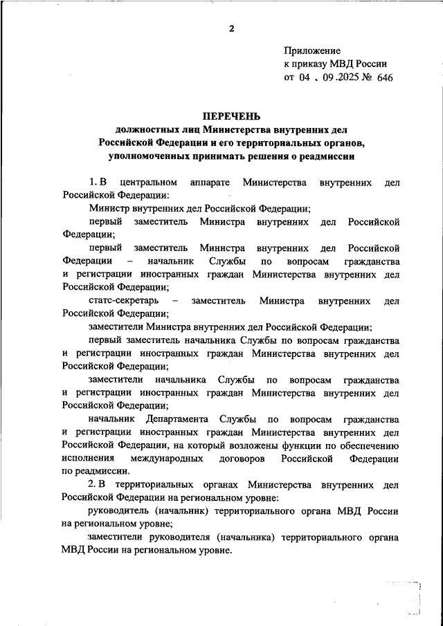 ПРИКАЗ МВД РФ от 04.09.2025 N 646