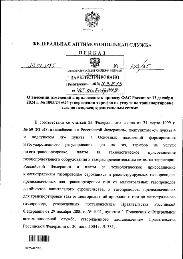 ПРИКАЗ Федеральной антимонопольной службы от 30.07.2025 N 592/25