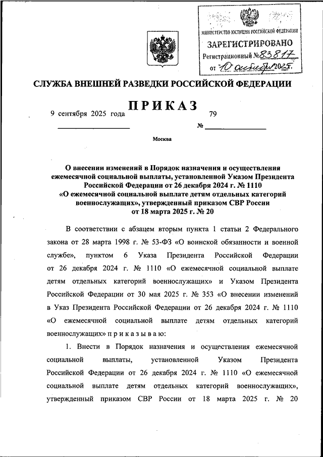 ПРИКАЗ СВР РФ от 09.09.2025 N 79