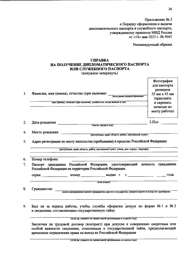ПРИКАЗ МИД РФ от 14.05.2025 N 9045