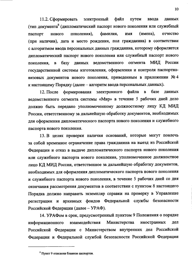 "ОБ УТВЕРЖДЕНИИ ПОРЯДКА ОФОРМЛЕНИЯ И ВЫДАЧИ ДИПЛОМАТИЧЕСКОГО ПАСПОРТА И СЛУЖЕБНОГО ПАСПОРТА, СОДЕРЖАЩИХ ЭЛЕКТРОННЫЕ НОСИТЕЛИ ИНФОРМАЦИИ"
