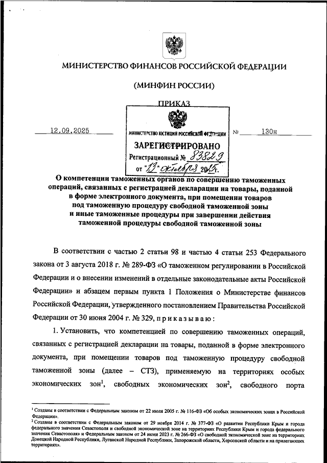 ПРИКАЗ Минфина РФ от 12.09.2025 N 130н