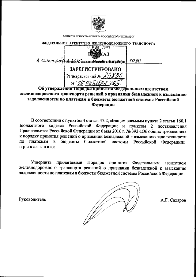 ПРИКАЗ Росжелдора от 09.09.2025 N 1020