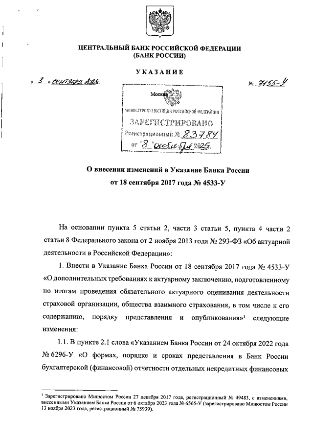 УКАЗАНИЕ ЦБ РФ от 03.09.2025 N 7155-У