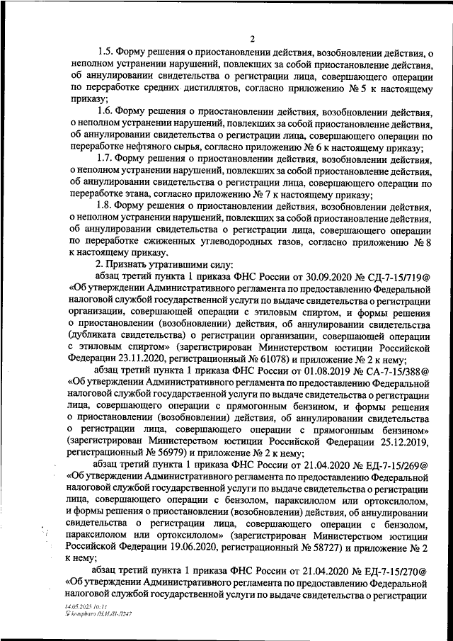 ПРИКАЗ ФНС РФ от 02.06.2025 N ЕД-7-15/496@