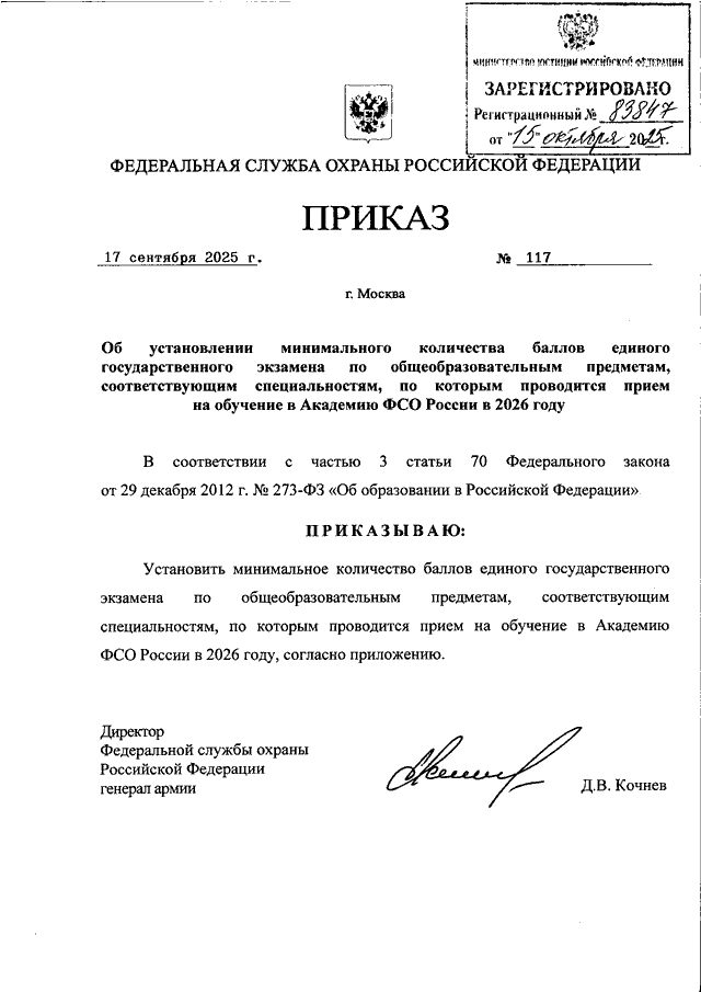ПРИКАЗ ФСО РФ от 17.09.2025 N 117