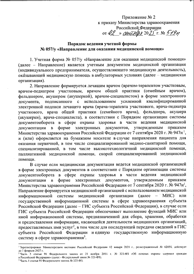 ПРИКАЗ Минздрава РФ от 02.09.2025 N 519н