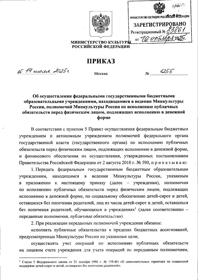 ПРИКАЗ Минкультуры РФ от 14.07.2025 N 1255