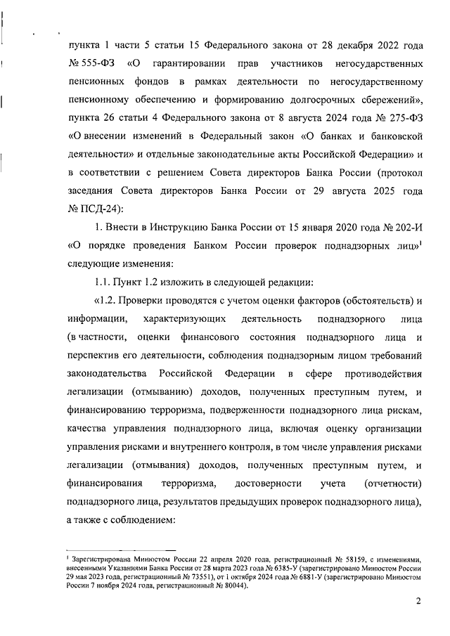 "О ВНЕСЕНИИ ИЗМЕНЕНИЙ В ИНСТРУКЦИЮ БАНКА РОССИИ ОТ 15 ЯНВАРЯ 2020 Г. N 202-И "О ПОРЯДКЕ ПРОВЕДЕНИЯ БАНКОМ РОССИИ ПРОВЕРОК ПОДНАДЗОРНЫХ ЛИЦ"