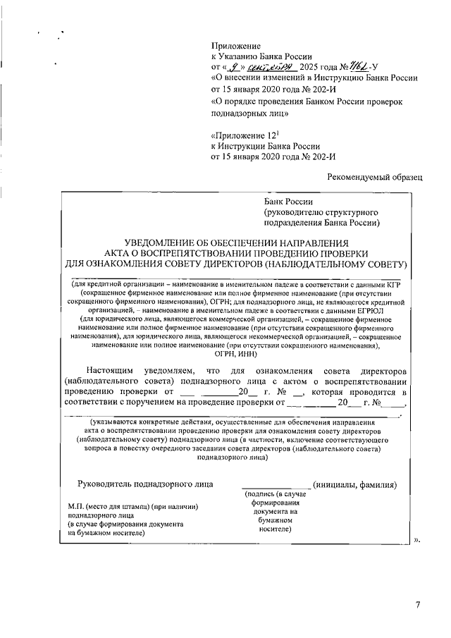 "О ВНЕСЕНИИ ИЗМЕНЕНИЙ В ИНСТРУКЦИЮ БАНКА РОССИИ ОТ 15 ЯНВАРЯ 2020 Г. N 202-И "О ПОРЯДКЕ ПРОВЕДЕНИЯ БАНКОМ РОССИИ ПРОВЕРОК ПОДНАДЗОРНЫХ ЛИЦ"