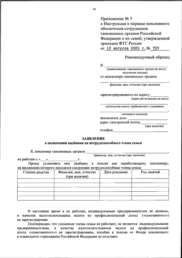 ПРИКАЗ ФТС РФ от 13.08.2025 N 737