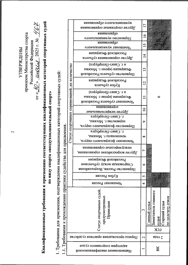 "ОБ УТВЕРЖДЕНИИ КВАЛИФИКАЦИОННЫХ ТРЕБОВАНИЙ К ПРИСВОЕНИЮ СООТВЕТСТВУЮЩИХ КВАЛИФИКАЦИОННЫХ КАТЕГОРИЙ СПОРТИВНЫХ СУДЕЙ ПО ВИДУ СПОРТА "ВОЗДУХОПЛАВАТЕЛЬНЫЙ СПОРТ"