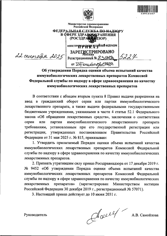 ПРИКАЗ Росздравнадзора от 22.09.2025 N 5227