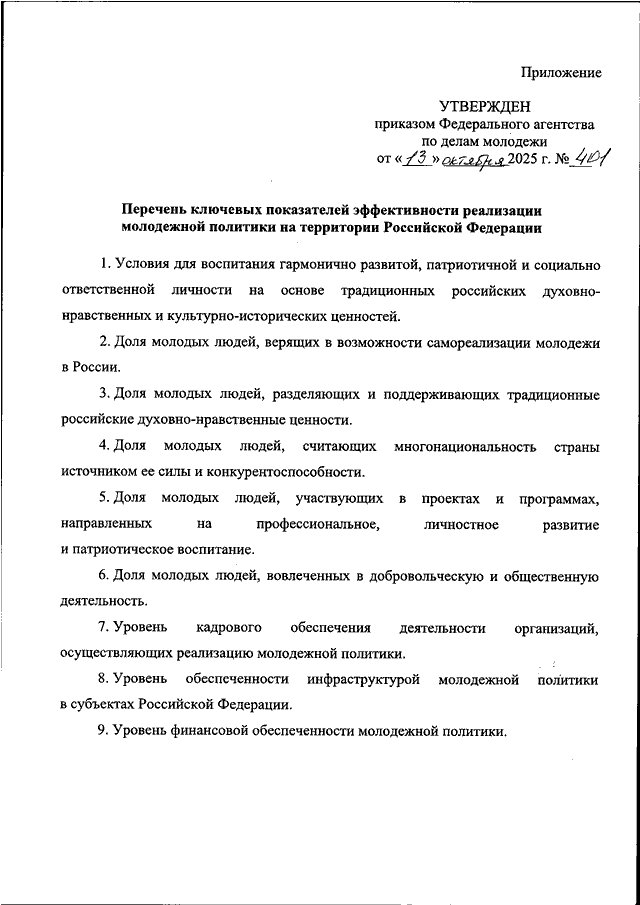ПРИКАЗ Росмолодежи от 13.10.2025 N 401