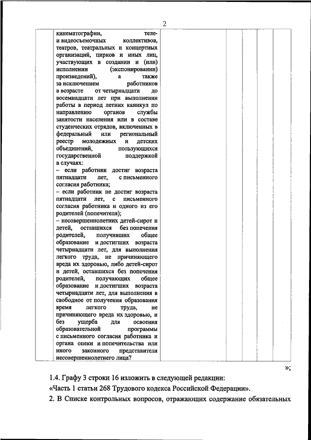 НОРМЫ ТРУДОВОГО ПРАВА, УТВЕРЖДЕННЫЕ ПРИКАЗОМ ФЕДЕРАЛЬНОЙ СЛУЖБЫ ПО