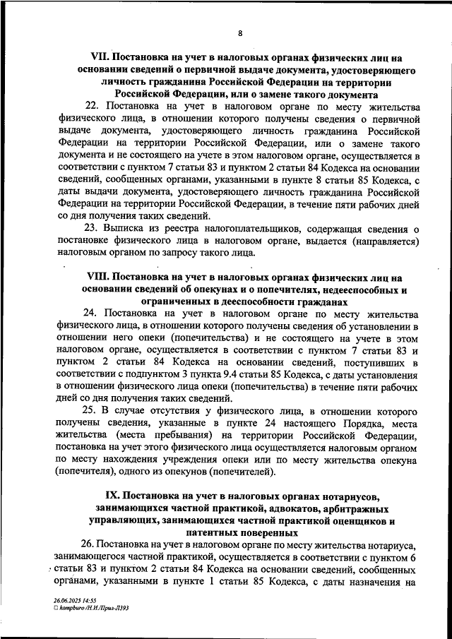 "ОБ УТВЕРЖДЕНИИ ПОРЯДКА ПОСТАНОВКИ НА УЧЕТ И СНЯТИЯ С УЧЕТА В НАЛОГОВЫХ ОРГАНАХ РОССИЙСКИХ ОРГАНИЗАЦИЙ, ГРАЖДАН РОССИЙСКОЙ ФЕДЕРАЦИИ, НЕ ЯВЛЯЮЩИХСЯ ИНДИВИДУАЛЬНЫМИ ПРЕДПРИНИМАТЕЛЯМИ, ИНДИВИДУАЛЬНЫХ ПРЕДПРИНИМАТЕЛЕЙ, А ТАКЖЕ ВНЕСЕНИЯ ИЗМЕНЕНИЙ В СВЕДЕНИЯ О НИХ В НАЛОГОВЫХ ОРГАНАХ"