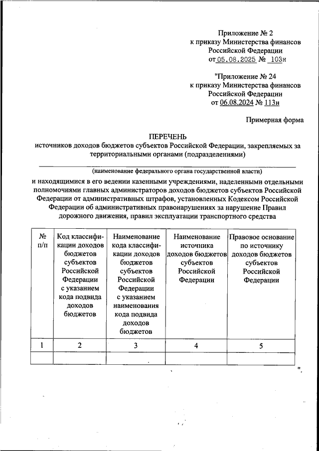 ПРИКАЗ Минфина РФ от 05.08.2025 N 103н