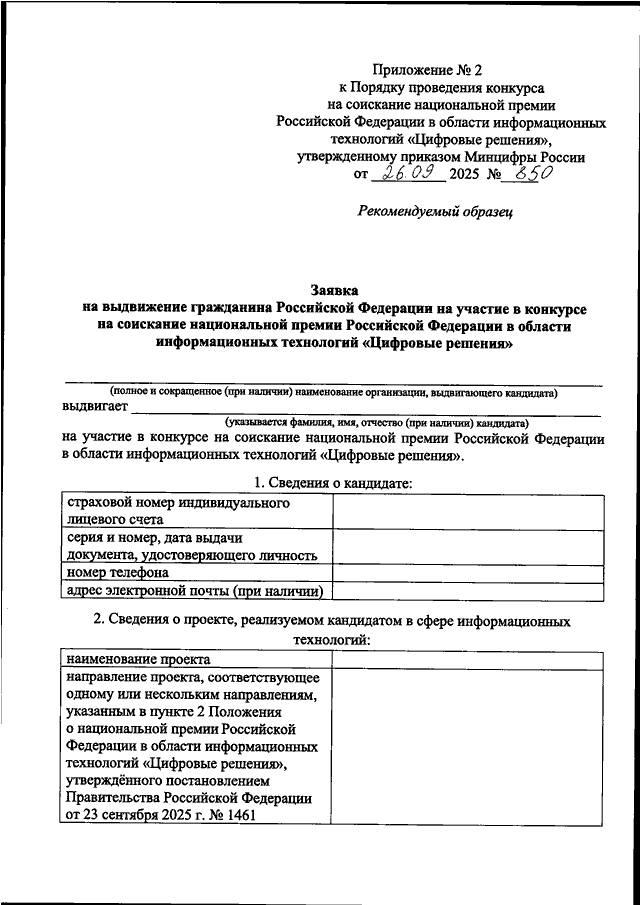 "ОБ УТВЕРЖДЕНИИ ПОРЯДКА ПРОВЕДЕНИЯ КОНКУРСА НА СОИСКАНИЕ НАЦИОНАЛЬНОЙ ПРЕМИИ РОССИЙСКОЙ ФЕДЕРАЦИИ В ОБЛАСТИ ИНФОРМАЦИОННЫХ ТЕХНОЛОГИЙ "ЦИФРОВЫЕ РЕШЕНИЯ"