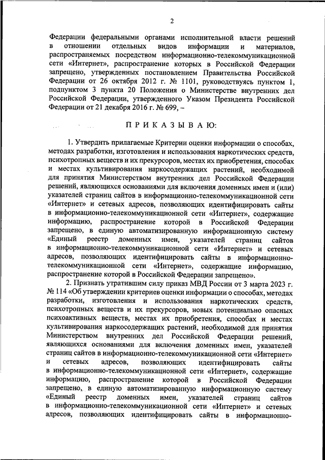 "ОБ УТВЕРЖДЕНИИ КРИТЕРИЕВ ОЦЕНКИ ИНФОРМАЦИИ О СПОСОБАХ, МЕТОДАХ РАЗРАБОТКИ, ИЗГОТОВЛЕНИЯ И ИСПОЛЬЗОВАНИЯ НАРКОТИЧЕСКИХ СРЕДСТВ, ПСИХОТРОПНЫХ ВЕЩЕСТВ И ИХ ПРЕКУРСОРОВ, МЕСТАХ ИХ ПРИОБРЕТЕНИЯ, СПОСОБАХ И МЕСТАХ КУЛЬТИВИРОВАНИЯ НАРКОСОДЕРЖАЩИХ РАСТЕНИЙ, НЕОБХОДИМОЙ ДЛЯ ПРИНЯТИЯ МИНИСТЕРСТВОМ ВНУТРЕННИХ ДЕЛ РОССИЙСКОЙ ФЕДЕРАЦИИ РЕШЕНИЙ, ЯВЛЯЮЩИХСЯ ОСНОВАНИЯМИ ДЛЯ ВКЛЮЧЕНИЯ ДОМЕННЫХ ИМЕН И (ИЛИ) УКАЗАТЕЛЕЙ СТРАНИЦ САЙТОВ В ИНФОРМАЦИОННО - ТЕЛЕКОММУНИКАЦИОННОЙ СЕТИ "ИНТЕРНЕТ" И СЕТЕВЫХ АДРЕСОВ, ПОЗВОЛЯЮЩИХ ИДЕНТИФИЦИРОВАТЬ САЙТЫ В ИНФОРМАЦИОННО - ТЕЛЕКОММУНИКАЦИОННОЙ СЕТИ "ИНТЕРНЕТ", СОДЕРЖАЩИЕ ИНФОРМАЦИЮ, РАСПРОСТРАНЕНИЕ КОТОРОЙ В РОССИЙСКОЙ ФЕДЕРАЦИИ ЗАПРЕЩЕНО, В ЕДИНУЮ АВТОМАТИЗИРОВАННУЮ ИНФОРМАЦИОННУЮ СИСТЕМУ "ЕДИНЫЙ РЕЕСТР ДОМЕННЫХ ИМЕН, УКАЗАТЕЛЕЙ СТРАНИЦ САЙТОВ В ИНФОРМАЦИОННО - ТЕЛЕКОММУНИКАЦИОННОЙ СЕТИ "ИНТЕРНЕТ" И СЕТЕВЫХ АДРЕСОВ, ПОЗВОЛЯЮЩИХ ИДЕНТИФИЦИРОВАТЬ САЙТЫ В ИНФОРМАЦИОННО - ТЕЛЕКОММУНИКАЦИОННОЙ СЕТИ "ИНТЕРНЕТ", СОДЕРЖАЩИЕ ИНФОРМАЦИЮ, РАСПРОСТРАНЕНИЕ КОТОРОЙ В РОССИЙСКОЙ ФЕДЕРАЦИИ ЗАПРЕЩЕНО"