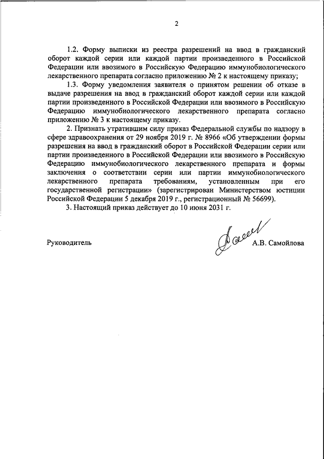 "ОБ УТВЕРЖДЕНИИ ФОРМЫ ЗАКЛЮЧЕНИЯ О СООТВЕТСТВИИ СЕРИИ ИЛИ ПАРТИИ ИММУНОБИОЛОГИЧЕСКОГО ЛЕКАРСТВЕННОГО ПРЕПАРАТА ТРЕБОВАНИЯМ, УСТАНОВЛЕННЫМ ПРИ ЕГО ГОСУДАРСТВЕННОЙ РЕГИСТРАЦИИ ИЛИ РЕГИСТРАЦИИ, ФОРМЫ ВЫПИСКИ ИЗ РЕЕСТРА РАЗРЕШЕНИЙ НА ВВОД В ГРАЖДАНСКИЙ ОБОРОТ КАЖДОЙ СЕРИИ ИЛИ КАЖДОЙ ПАРТИИ ПРОИЗВЕДЕННОГО В РОССИЙСКОЙ ФЕДЕРАЦИИ ИЛИ ВВОЗИМОГО В РОССИЙСКУЮ ФЕДЕРАЦИЮ ИММУНОБИОЛОГИЧЕСКОГО ЛЕКАРСТВЕННОГО ПРЕПАРАТА И ФОРМЫ УВЕДОМЛЕНИЯ ЗАЯВИТЕЛЯ О ПРИНЯТОМ РЕШЕНИИ ОБ ОТКАЗЕ В ВЫДАЧЕ РАЗРЕШЕНИЯ НА ВВОД В ГРАЖДАНСКИЙ ОБОРОТ КАЖДОЙ СЕРИИ ИЛИ КАЖДОЙ ПАРТИИ ПРОИЗВЕДЕННОГО В РОССИЙСКОЙ ФЕДЕРАЦИИ ИЛИ ВВОЗИМОГО В РОССИЙСКУЮ ФЕДЕРАЦИЮ ИММУНОБИОЛОГИЧЕСКОГО ЛЕКАРСТВЕННОГО ПРЕПАРАТА"