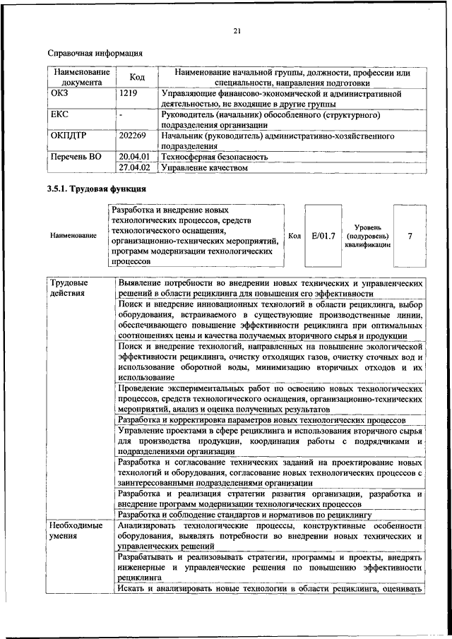 "ОБ УТВЕРЖДЕНИИ ПРОФЕССИОНАЛЬНОГО СТАНДАРТА "РАБОТНИК В ОБЛАСТИ РЕЦИКЛИНГА"