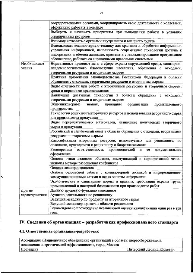"ОБ УТВЕРЖДЕНИИ ПРОФЕССИОНАЛЬНОГО СТАНДАРТА "РАБОТНИК В ОБЛАСТИ РЕЦИКЛИНГА"