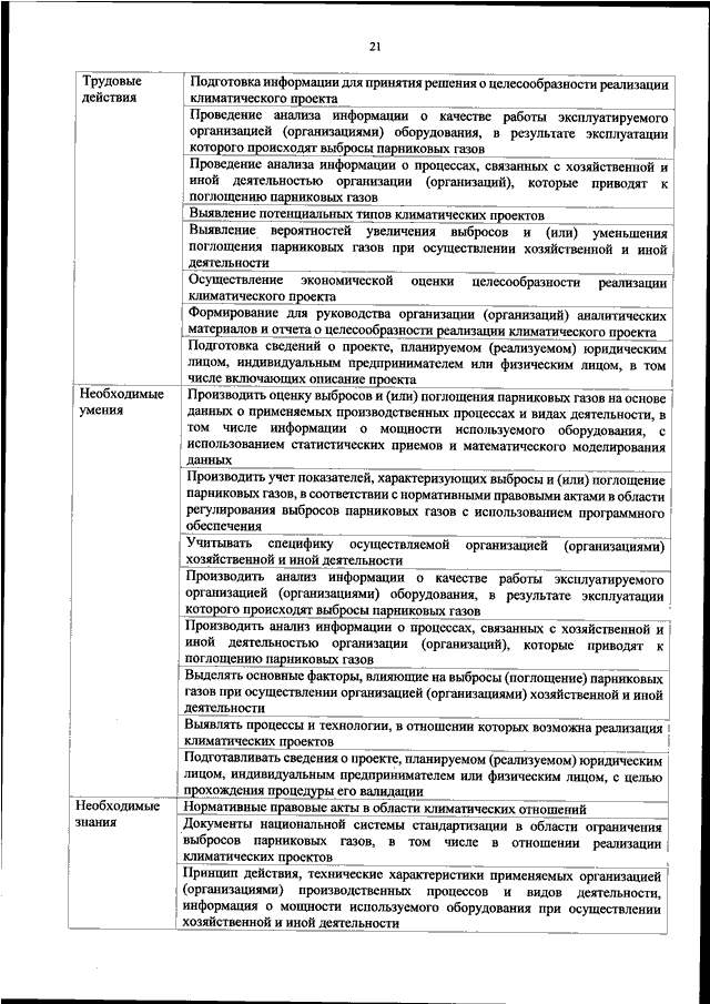"ОБ УТВЕРЖДЕНИИ ПРОФЕССИОНАЛЬНОГО СТАНДАРТА "СПЕЦИАЛИСТ В ОБЛАСТИ РЕГУЛИРОВАНИЯ ВЫБРОСОВ И ПОГЛОЩЕНИЙ ПАРНИКОВЫХ ГАЗОВ"