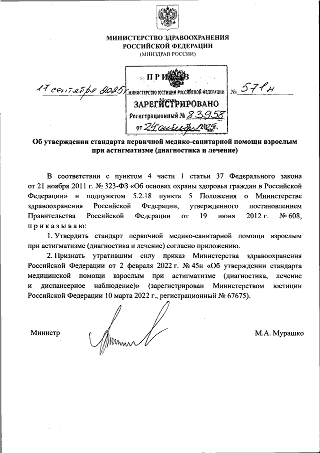 ПРИКАЗ Минздрава РФ от 17.09.2025 N 571н