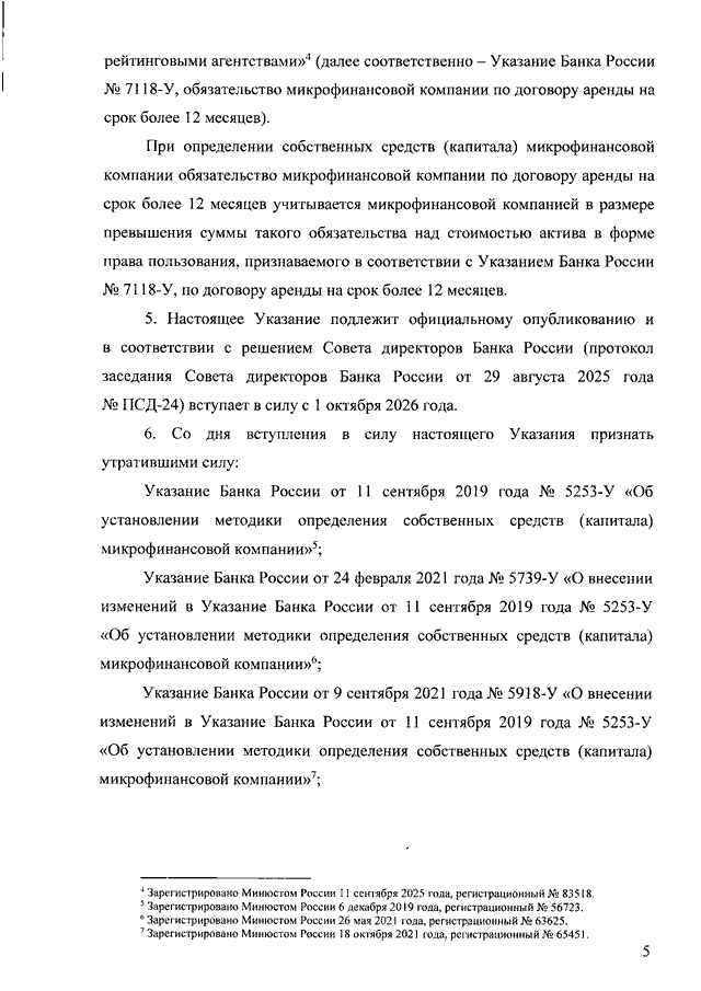 УКАЗАНИЕ ЦБ РФ от 11.09.2025 N 7167-У