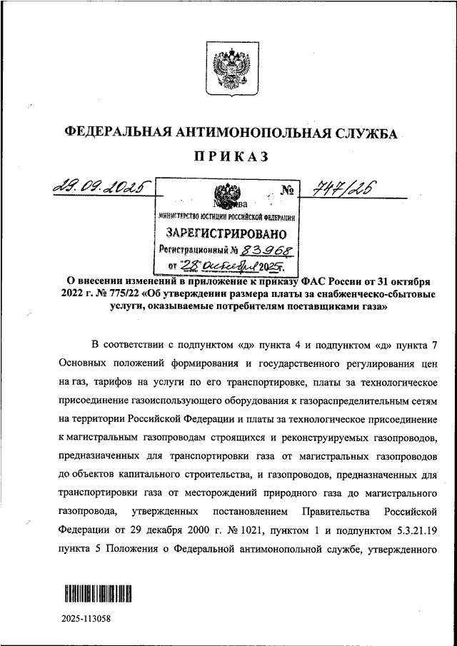 ПРИКАЗ Федеральной антимонопольной службы от 29.09.2025 N 747/25