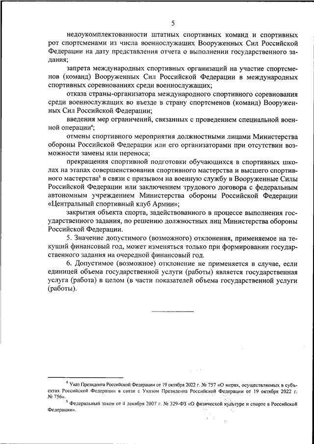 "ОБ УСТАНОВЛЕНИИ ПОРЯДКА ОПРЕДЕЛЕНИЯ И ПРИМЕНЕНИЯ ЗНАЧЕНИЙ ДОПУСТИМЫХ (ВОЗМОЖНЫХ) ОТКЛОНЕНИЙ ОТ ЗНАЧЕНИЙ ПОКАЗАТЕЛЕЙ КАЧЕСТВА И (ИЛИ) ОБЪЕМА ГОСУДАРСТВЕННЫХ УСЛУГ (РАБОТ), УСТАНОВЛЕННЫХ В ГОСУДАРСТВЕННОМ ЗАДАНИИ НА ОКАЗАНИЕ ГОСУДАРСТВЕННЫХ УСЛУГ (ВЫПОЛНЕНИЕ РАБОТ) ФЕДЕРАЛЬНЫМ ГОСУДАРСТВЕННЫМ БЮДЖЕТНЫМ И АВТОНОМНЫМ УЧРЕЖДЕНИЯМ, ОСУЩЕСТВЛЯЮЩИМ ДЕЯТЕЛЬНОСТЬ В ОБЛАСТИ ФИЗИЧЕСКОЙ КУЛЬТУРЫ И СПОРТА, ПОЛНОМОЧИЯ УЧРЕДИТЕЛЯ КОТОРЫХ ОСУЩЕСТВЛЯЕТ МИНИСТЕРСТВО ОБОРОНЫ РОССИЙСКОЙ ФЕДЕРАЦИИ"