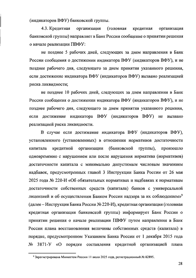 "О ТРЕБОВАНИЯХ К СОДЕРЖАНИЮ, ПОРЯДКЕ И СРОКАХ ПРЕДСТАВЛЕНИЯ КРЕДИТНЫМИ ОРГАНИЗАЦИЯМИ В БАНК РОССИИ ПЛАНОВ ВОССТАНОВЛЕНИЯ ФИНАНСОВОЙ УСТОЙЧИВОСТИ, ИЗМЕНЕНИЙ, ВНОСИМЫХ В ПЛАНЫ ВОССТАНОВЛЕНИЯ ФИНАНСОВОЙ УСТОЙЧИВОСТИ, ИХ ОЦЕНКИ БАНКОМ РОССИИ, А ТАКЖЕ О ПОРЯДКЕ ИНФОРМИРОВАНИЯ КРЕДИТНЫМИ ОРГАНИЗАЦИЯМИ БАНКА РОССИИ О НАСТУПЛЕНИИ В ИХ ДЕЯТЕЛЬНОСТИ СОБЫТИЙ, ПРЕДУСМОТРЕННЫХ ПЛАНОМ ВОССТАНОВЛЕНИЯ ФИНАНСОВОЙ УСТОЙЧИВОСТИ, И ПРИНЯТИИ РЕШЕНИЯ О НАЧАЛЕ ЕГО РЕАЛИЗАЦИИ"