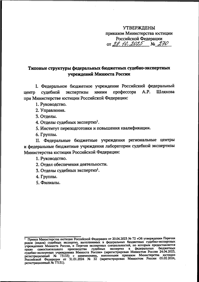 ПРИКАЗ Минюста РФ от 28.10.2025 N 270
