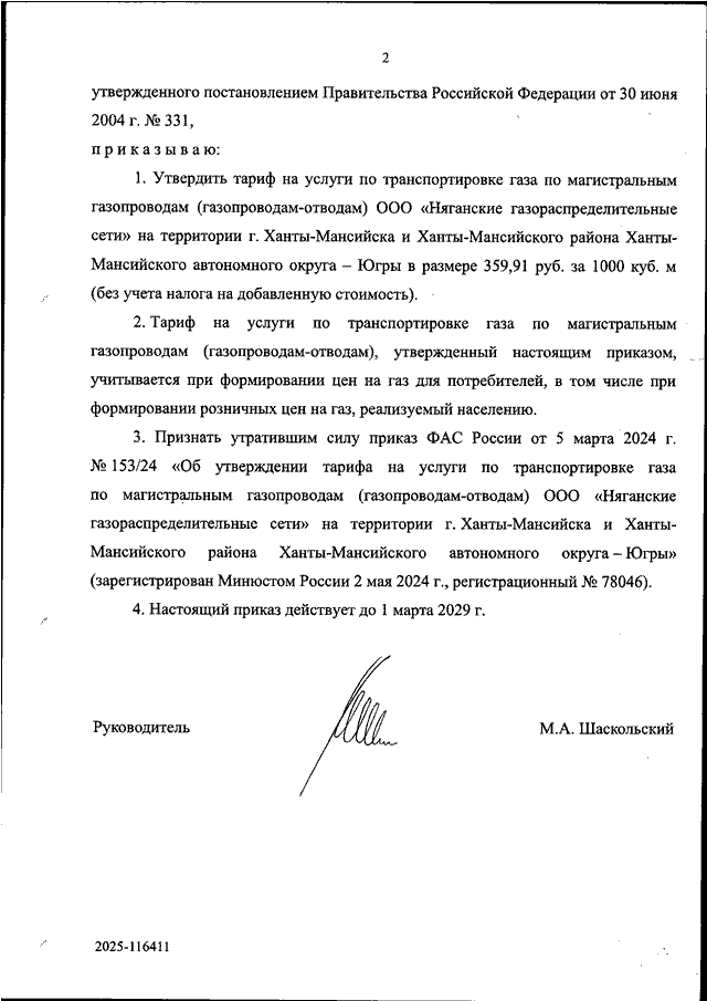 "ОБ УТВЕРЖДЕНИИ ТАРИФА НА УСЛУГИ ПО ТРАНСПОРТИРОВКЕ ГАЗА ПО МАГИСТРАЛЬНЫМ ГАЗОПРОВОДАМ (ГАЗОПРОВОДАМ - ОТВОДАМ) ООО "НЯГАНСКИЕ ГАЗОРАСПРЕДЕЛИТЕЛЬНЫЕ СЕТИ" НА ТЕРРИТОРИИ Г. ХАНТЫ-МАНСИЙСКА И ХАНТЫ-МАНСИЙСКОГО РАЙОНА ХАНТЫ-МАНСИЙСКОГО АВТОНОМНОГО ОКРУГА - ЮГРЫ"