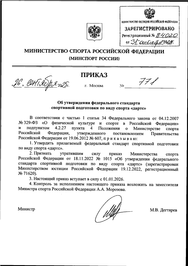 ПРИКАЗ Минспорта РФ от 26.09.2025 N 771