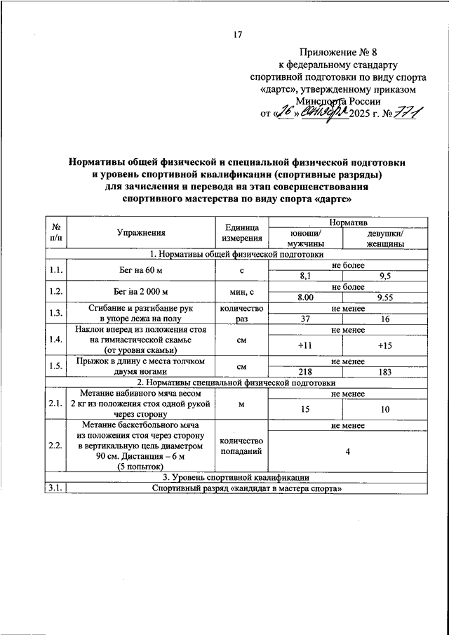 ПРИКАЗ Минспорта РФ от 26.09.2025 N 771