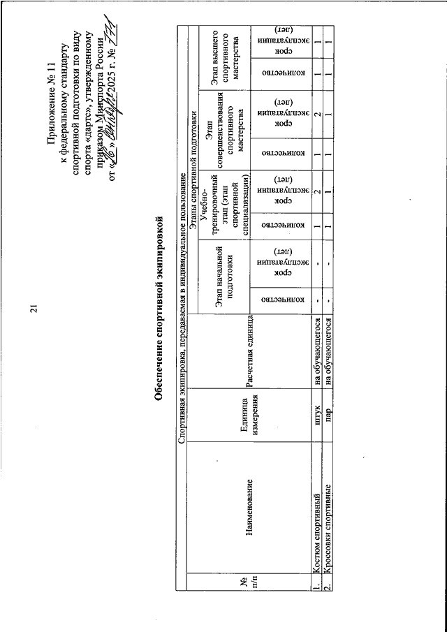 "ОБ УТВЕРЖДЕНИИ ФЕДЕРАЛЬНОГО СТАНДАРТА СПОРТИВНОЙ ПОДГОТОВКИ ПО ВИДУ СПОРТА "ДАРТС"