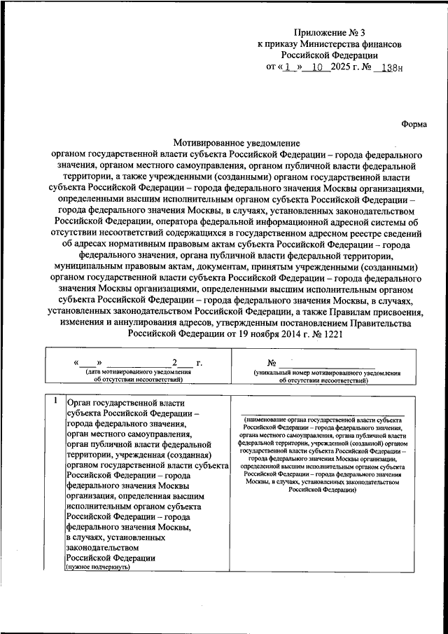 ПРИКАЗ Минфина РФ от 01.10.2025 N 138н