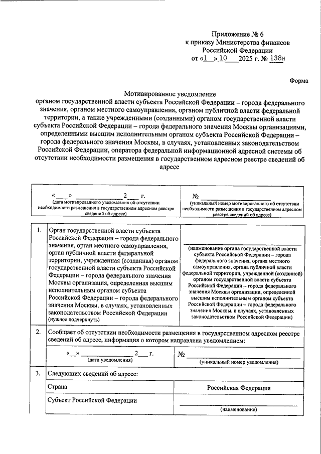 ПРИКАЗ Минфина РФ от 01.10.2025 N 138н