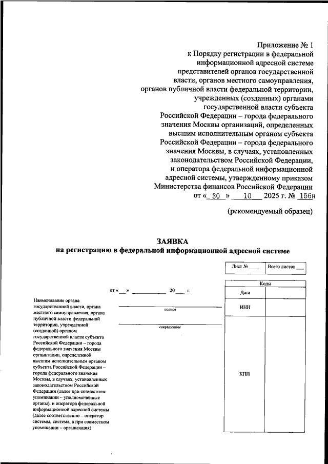 ПРИКАЗ Минфина РФ от 30.10.2025 N 156н