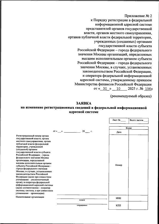ПРИКАЗ Минфина РФ от 30.10.2025 N 156н