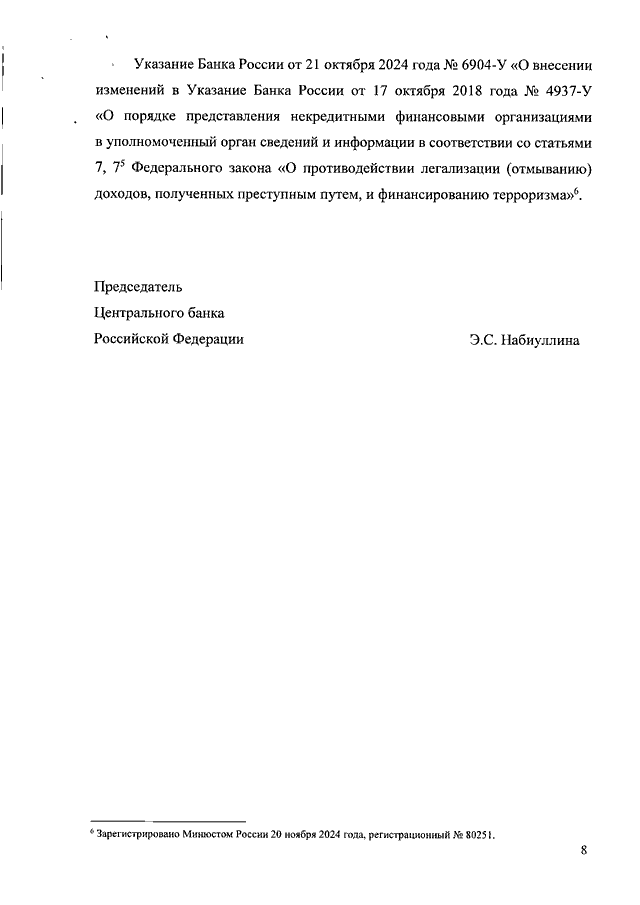 УКАЗАНИЕ ЦБ РФ от 30.06.2025 N 7126-У