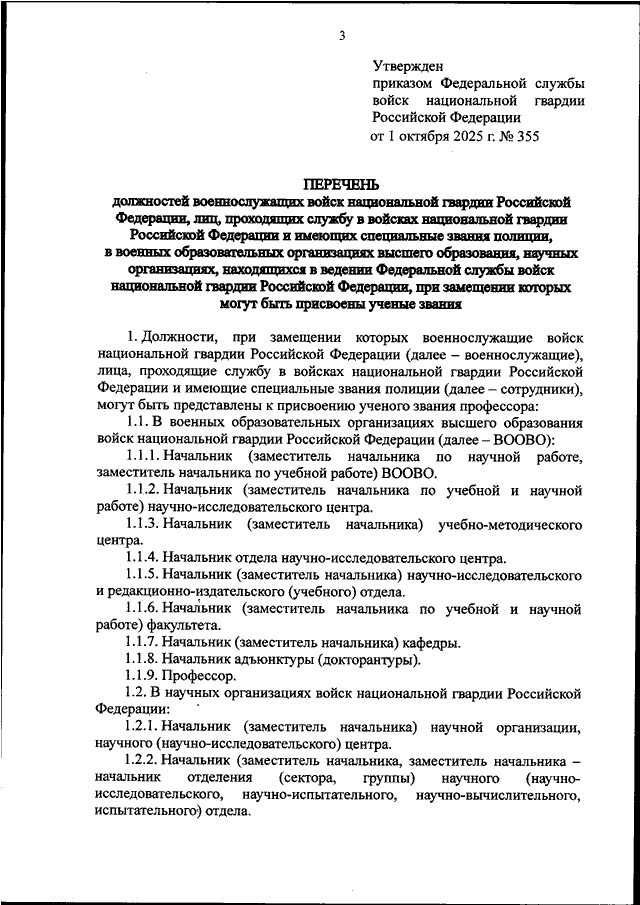 ПРИКАЗ Росгвардии от 01.10.2025 N 355