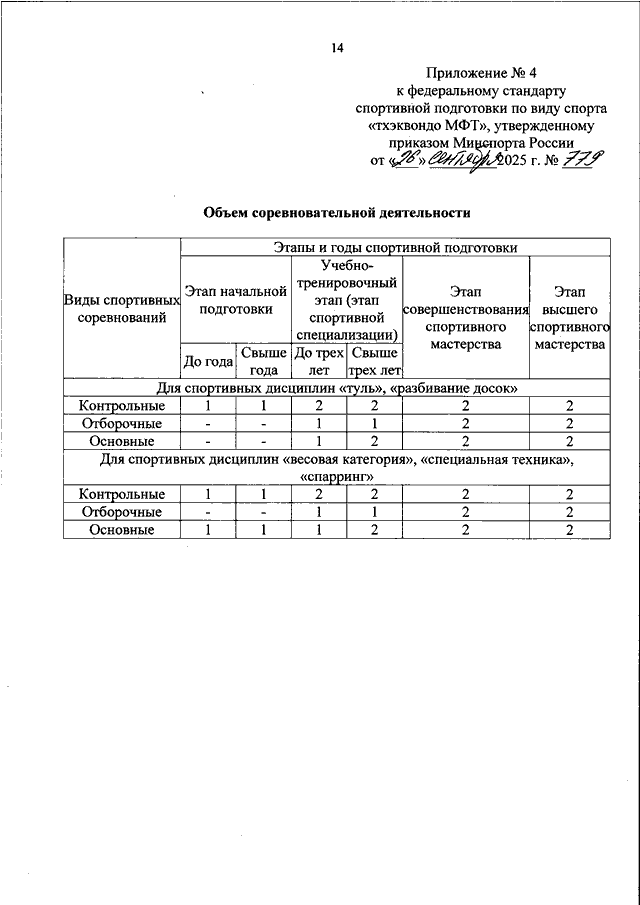 ПРИКАЗ Минспорта РФ от 26.09.2025 N 779