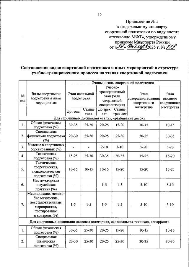 ПРИКАЗ Минспорта РФ от 26.09.2025 N 779