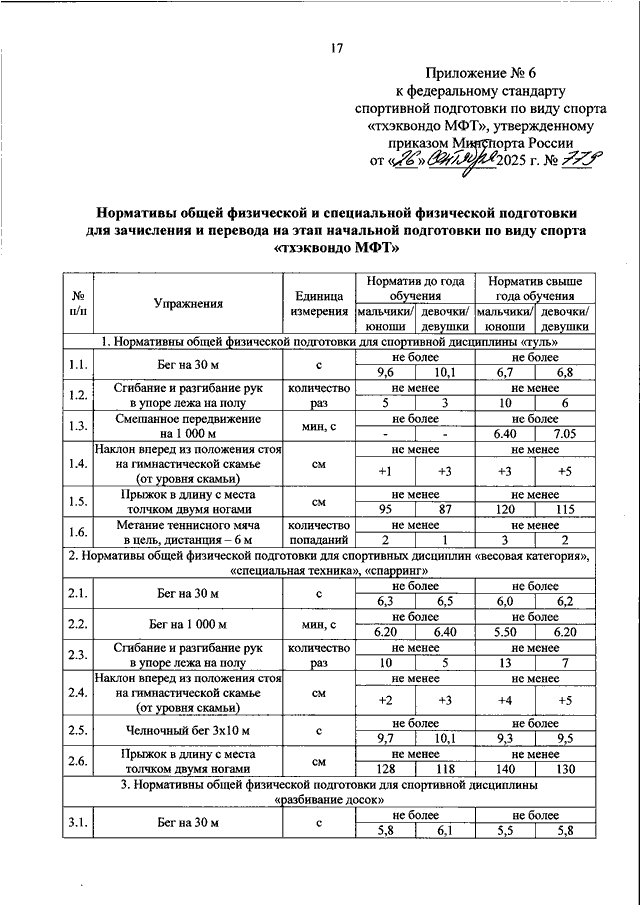 "ОБ УТВЕРЖДЕНИИ ФЕДЕРАЛЬНОГО СТАНДАРТА СПОРТИВНОЙ ПОДГОТОВКИ ПО ВИДУ СПОРТА "ТХЭКВОНДО МФТ"