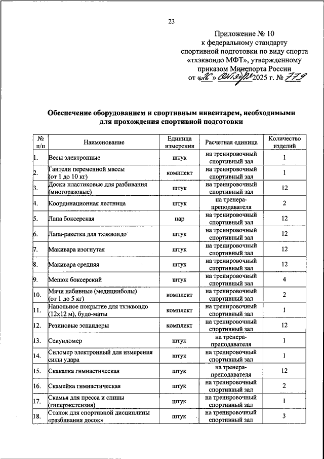 ПРИКАЗ Минспорта РФ от 26.09.2025 N 779