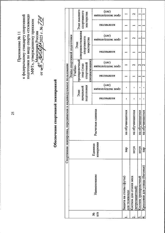 ПРИКАЗ Минспорта РФ от 26.09.2025 N 779