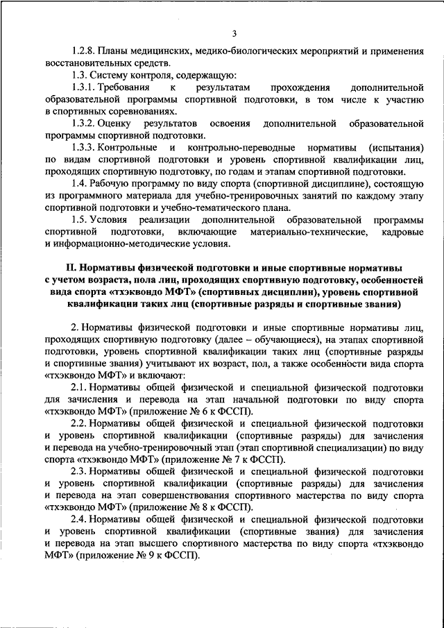 "ОБ УТВЕРЖДЕНИИ ФЕДЕРАЛЬНОГО СТАНДАРТА СПОРТИВНОЙ ПОДГОТОВКИ ПО ВИДУ СПОРТА "ТХЭКВОНДО МФТ"
