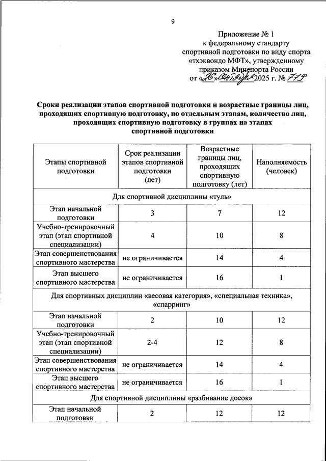 ПРИКАЗ Минспорта РФ от 26.09.2025 N 779